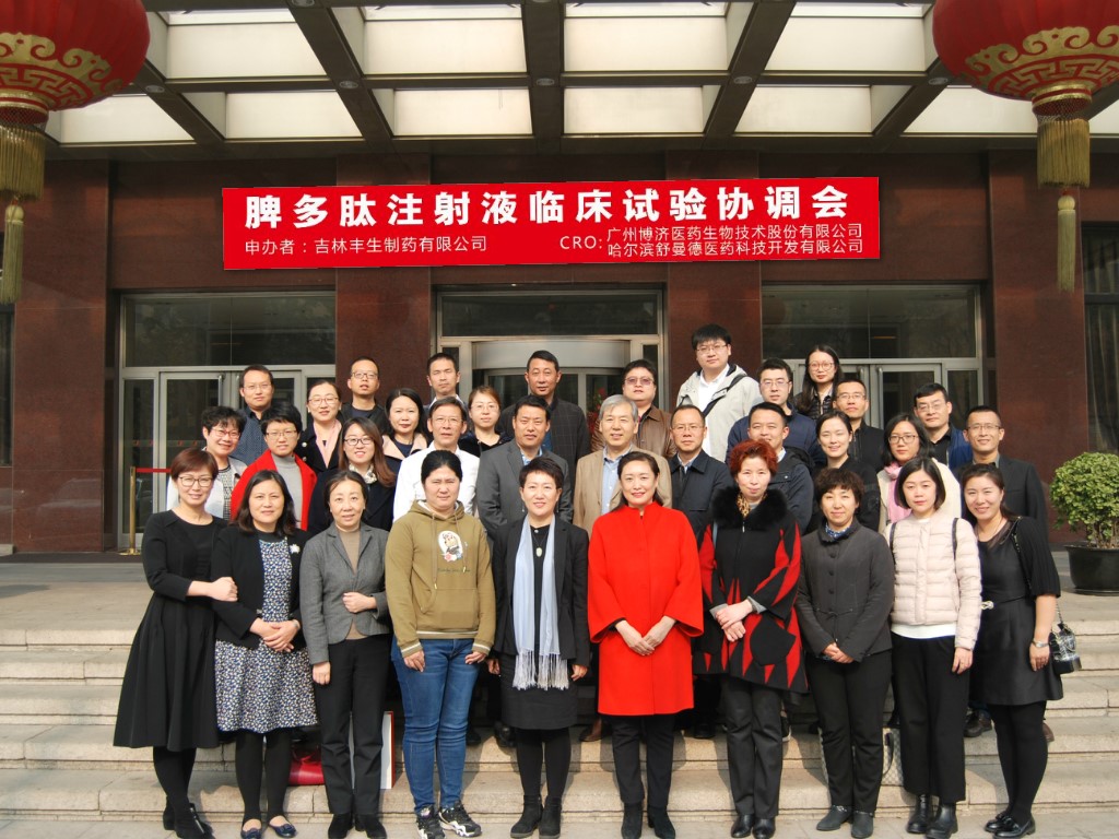 2018年11月3日,由吉林豐生制藥有限公司申辦、廣州博濟(jì)醫(yī)藥生物技術(shù)股份有限公司和哈爾濱舒曼德醫(yī)藥科技開發(fā)有限公司協(xié)辦、博惠康(北京)數(shù)據(jù)科技有限公司共同參與的“脾多肽注射液臨床試驗(yàn)協(xié)調(diào)會(huì)“在北京前門建國(guó)飯店順利召開。